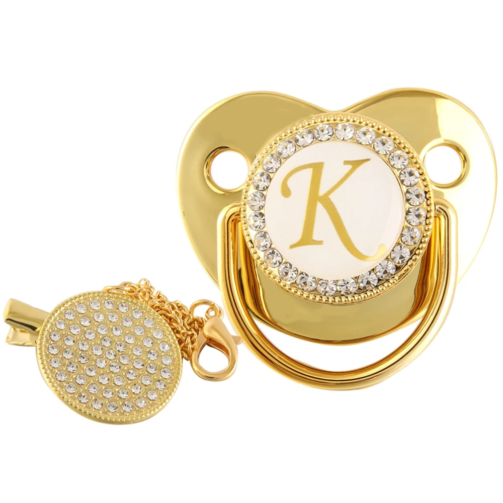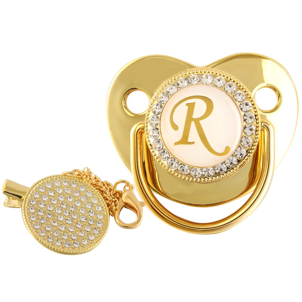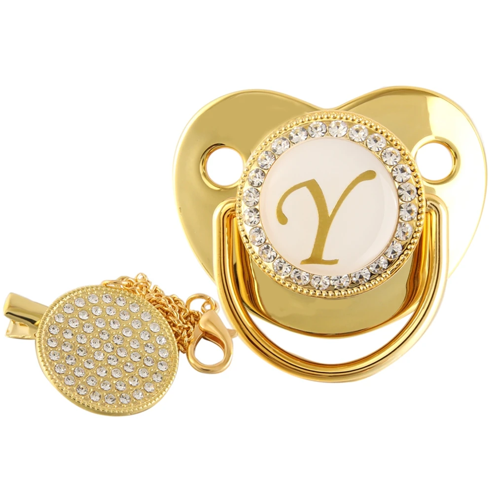 Стильный, с блеском золота соски-пустышки с Стразы 26 букв с гравир...