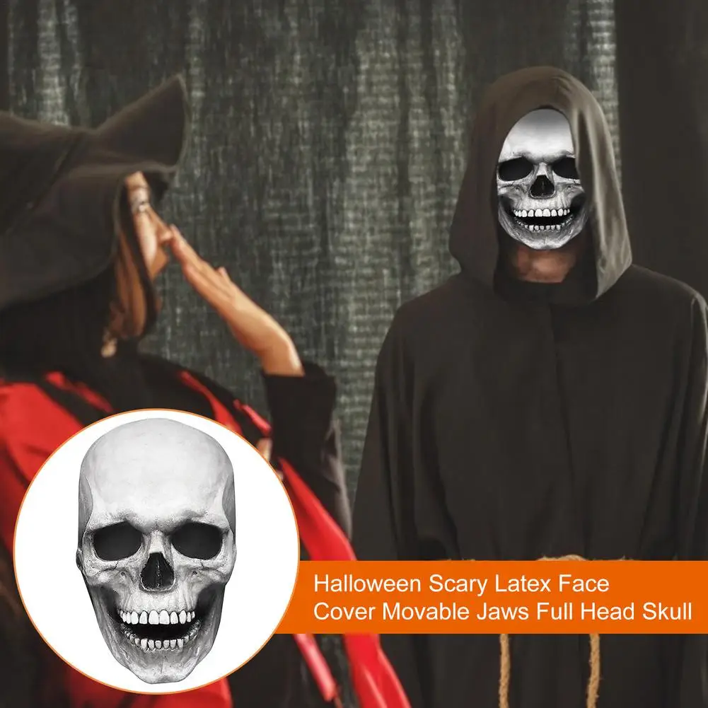 Реалистичная маска с черепом на всю голову для Хэллоуина, жуткие Вечерние Маски, латексная маска для лица, подвижные челюсти, клубный карнавальный костюм, Забавный реквизит для косплея