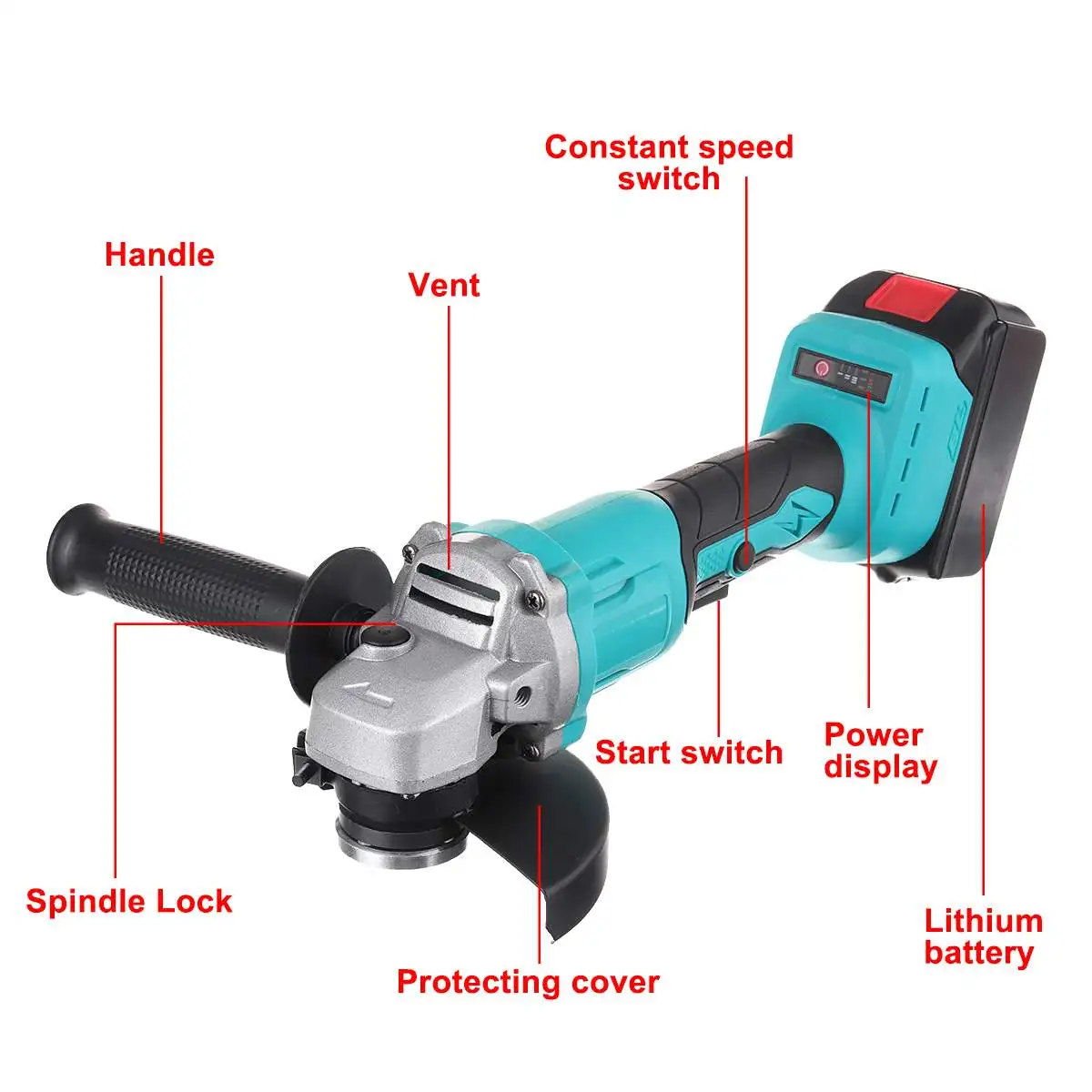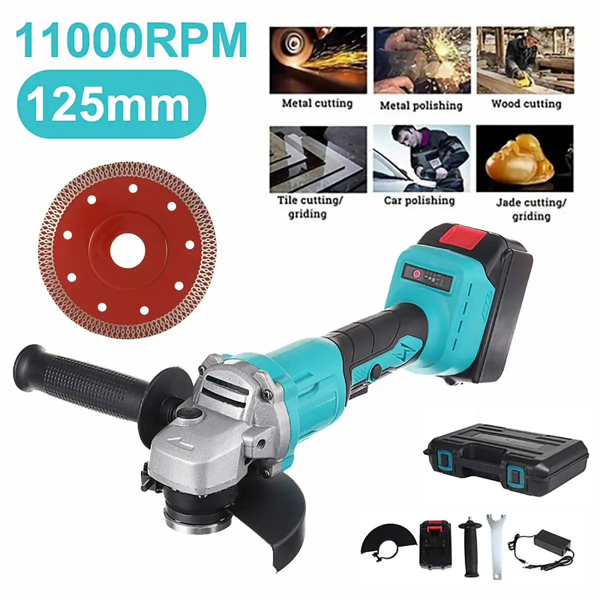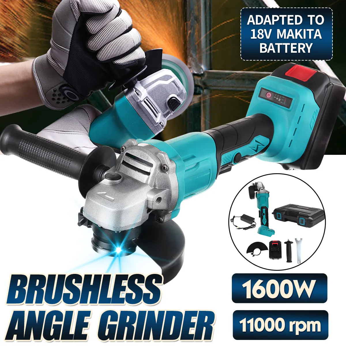 125 мм бесщеточная Беспроводная угловая шлифовальная машина, электрическая угловая шлифовальная машина для резки, электроинструмент с батареей и коробкой
