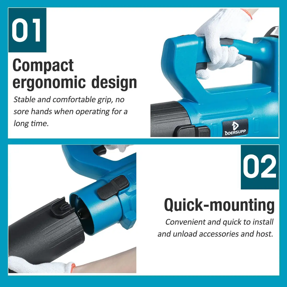 Особенности:-Компактный эргономичный дизайн, стабильный и удобный захват, не болят руки при длительной работе.-Быстрая установка, удобная и быстрая установка и разгрузка аксессуаров и хоста.-Мощный двигатель, двигатель с медным сердечником, большая мощность, более длительный срок службы-Шестискоростная регулировка скорости, разные сцены используют разную скорость, эффективно продлевая срок службы двигателя-Охлаждающие отверстия, Охлаждающие отверстия в гондоле двигателя для снижения температуры двигателя и защиты двигателя.-Сегментированная выдувная труба, воздушная труба может быть длинной или короткой, собирается в соответствии с потребностями использования