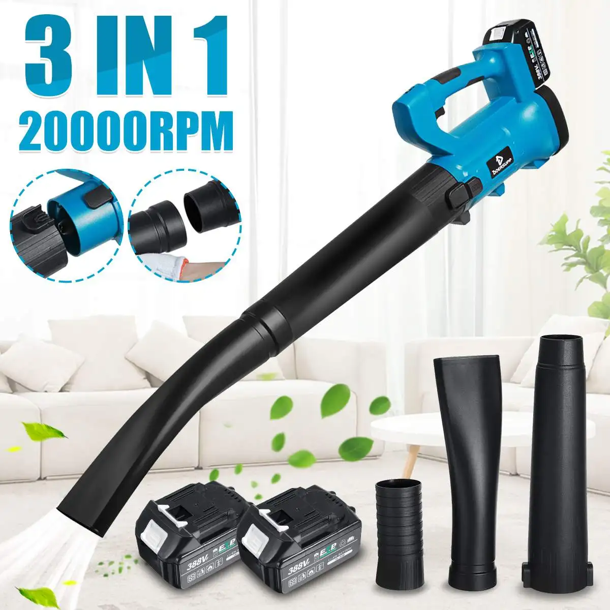 Характеристики:-Цвет: синий-Тип: 388Vf-Напряжение: 21 в-Вилка: вилка ЕС, вилка США-Количество батарей: 1 шт., 2 шт., без батареи (опционально)-Скорость ветра: 168 км/ч-Скорость: 3000-20000об/мин-Шестерня: 6 Регулируемых передач-Размер: 98x11x23 см/38,5x4,3x9''