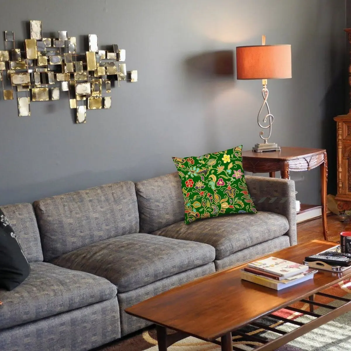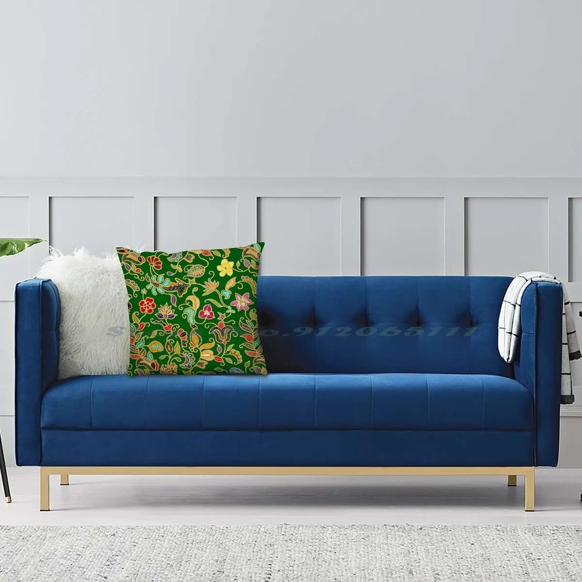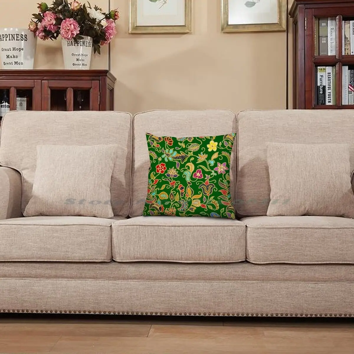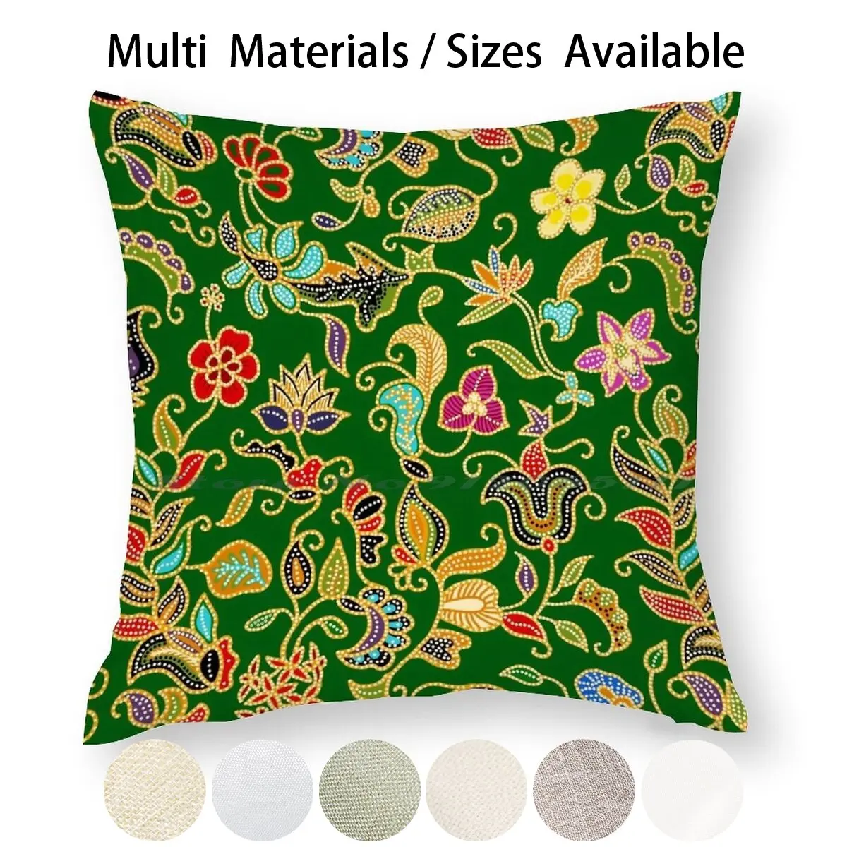 Наволочка саронг кебая Батик (зеленый), наволочка для подушки, наволочка из хлопка и льна, саронг кебая батик, Цветочный зеленый сингапурский мотив