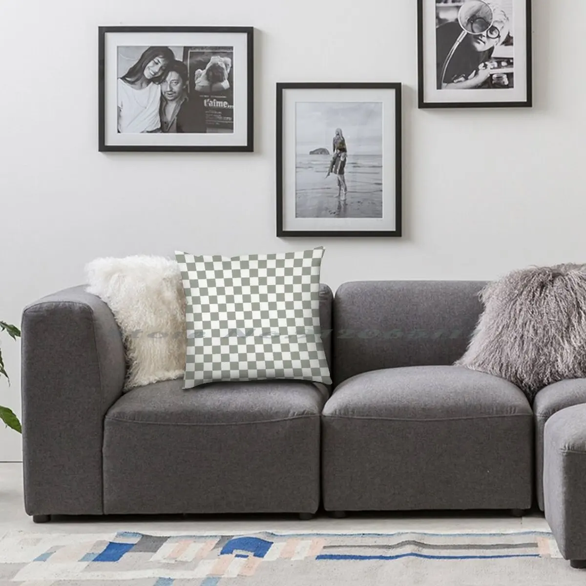 Большая наволочка в стиле пустыни, серо-зеленая и белая подушка в клетку, наволочка из хлопка и льна, большие квадраты, шашки
