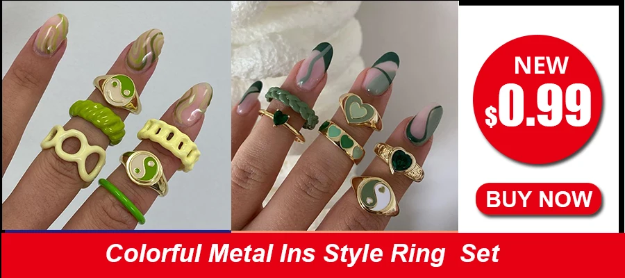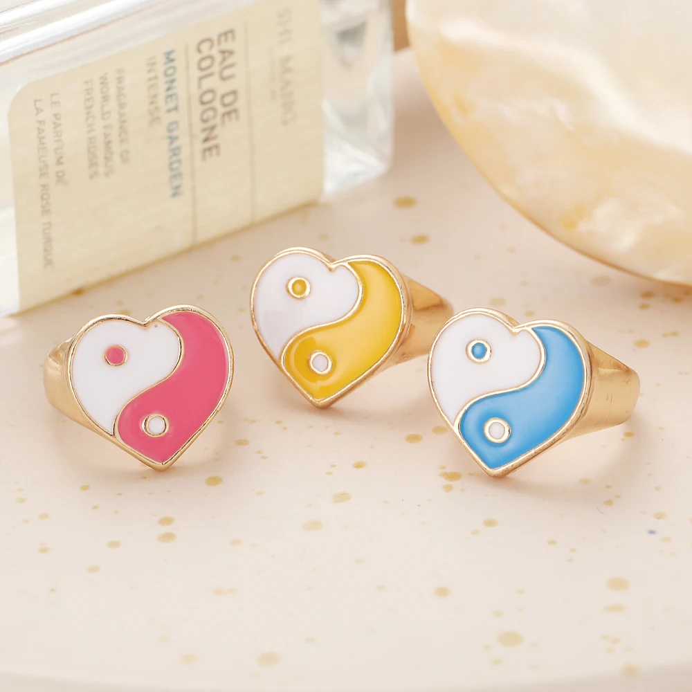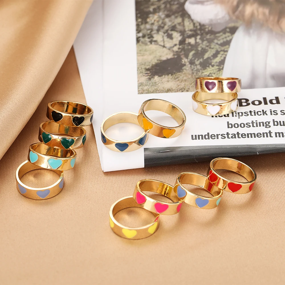 Женский комплект колец с сердечком Y2K, разноцветные открытые медны...