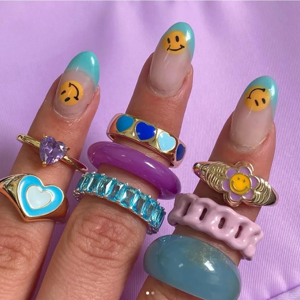 Набор колец в винтажном стиле с изображением Золотого сердца и улыб...