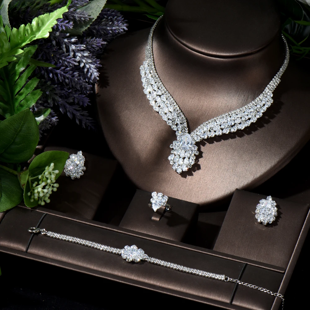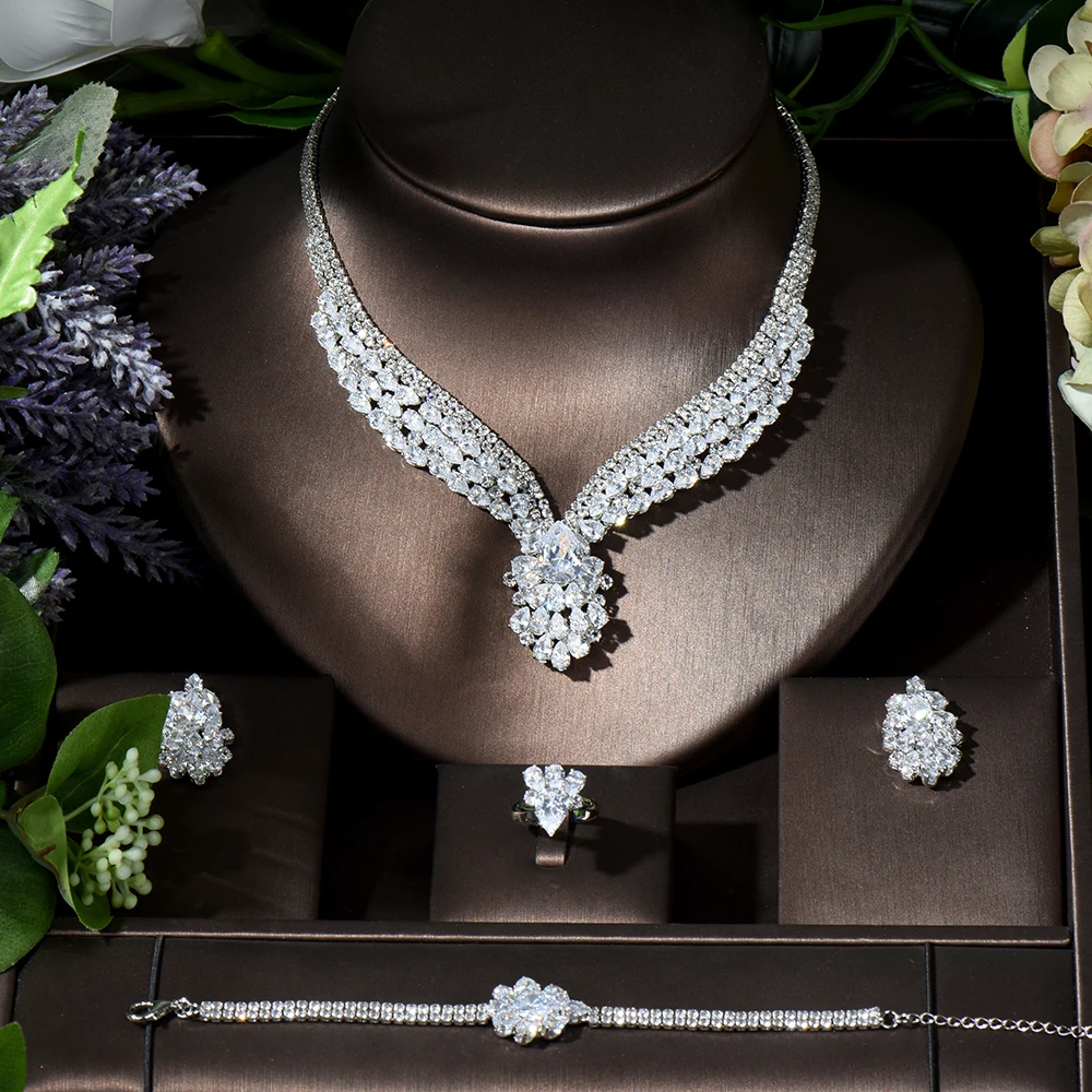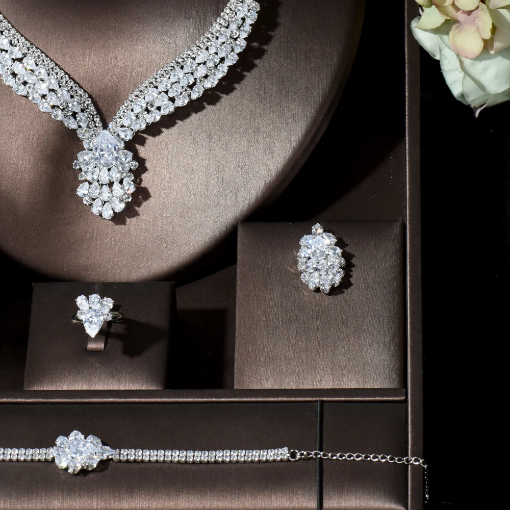 HIBRIDE роскошные 4 шт. Свадебные циркониевые ожерелья Серьги Кольц...