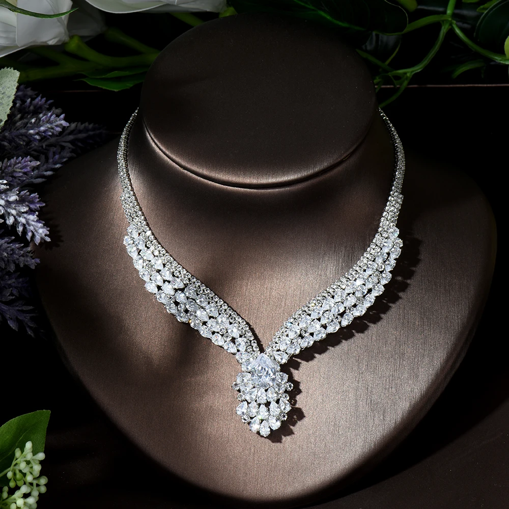 HIBRIDE классические женские свадебные ювелирные изделия для женщин великолепные капли воды кубического циркония свадебные вечерние наборы ожерелье серьги N-459