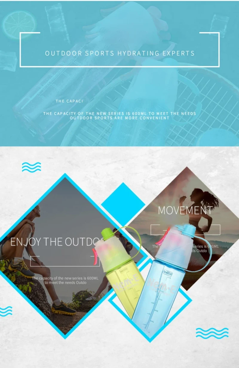 Новые креативные бутылки с распылителем для воды, портативные бутылки для распыления, для занятий спортом на открытом воздухе, для спортзала, для питья, шейкер, 600 мл, кухонные аксессуары