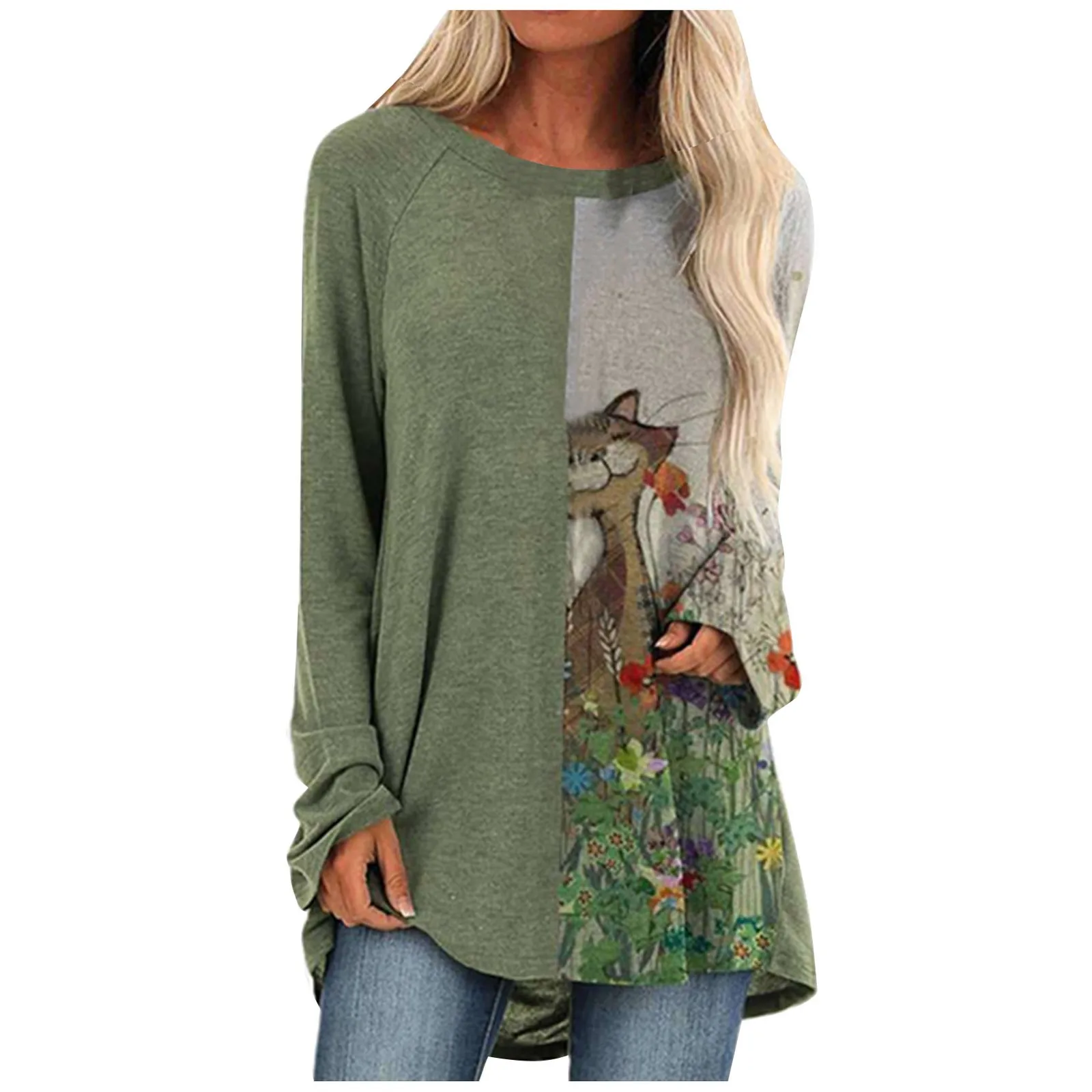 Повседневная Женская блузка с цветочным принтом, осенняя Женская одежда с круглым вырезом, женская рубашка с длинным рукавом, модные женские блузки 2021