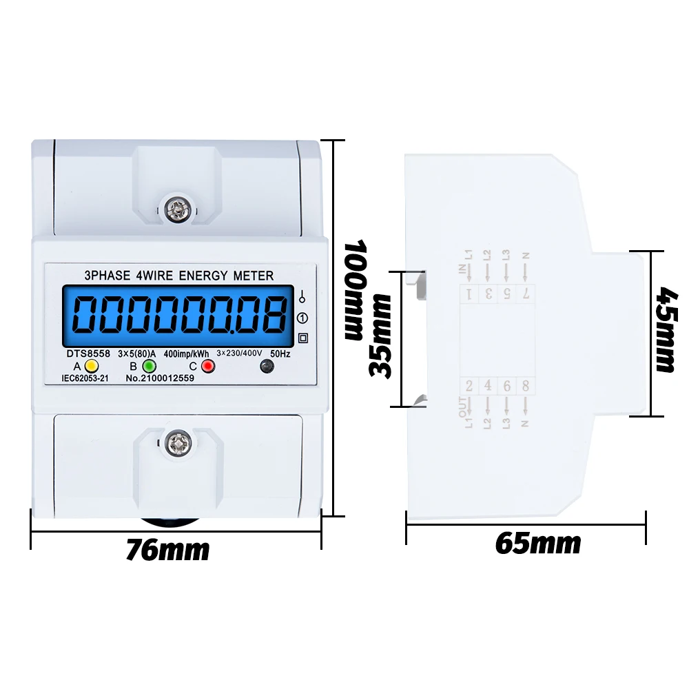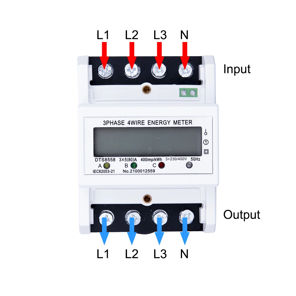 3-фазный 4-проводной счетчик энергии RS485 Modbus 380 В на DIN-рейк...