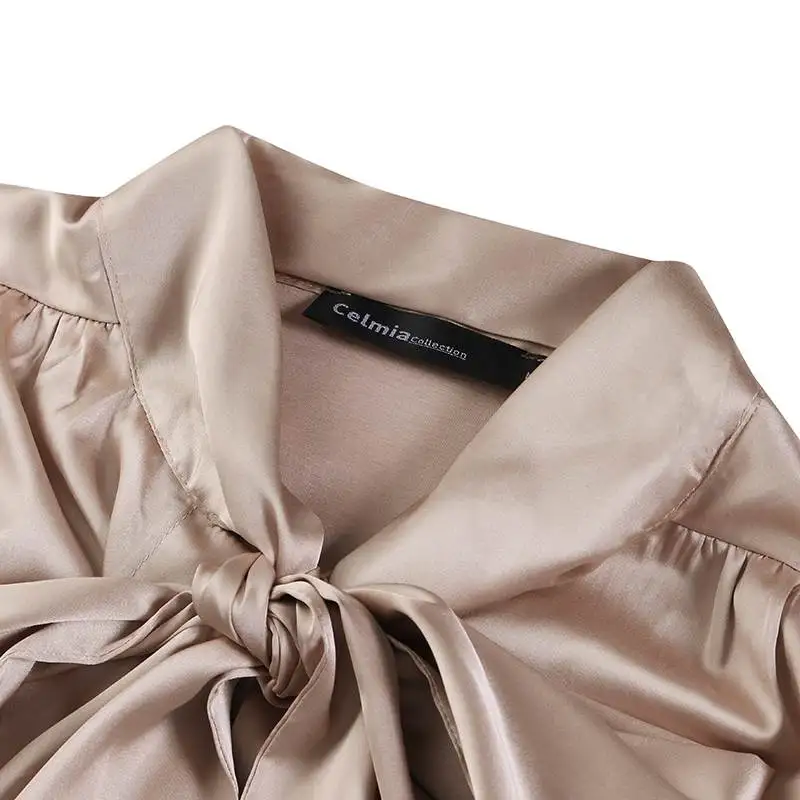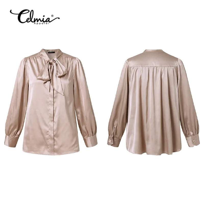 Модные женские атласные блузки 2021 Celmia винтажные рубашки с бант...