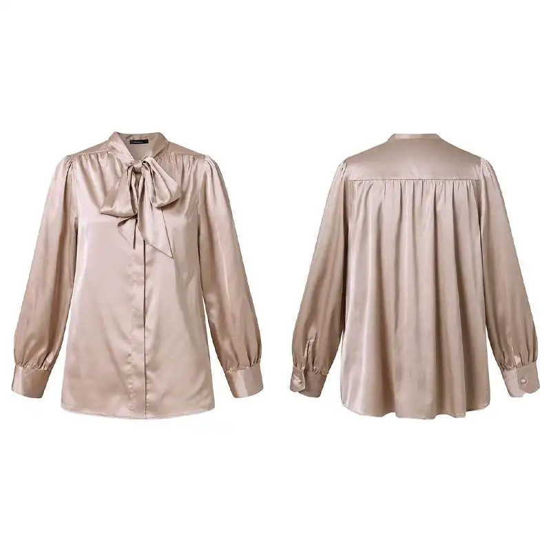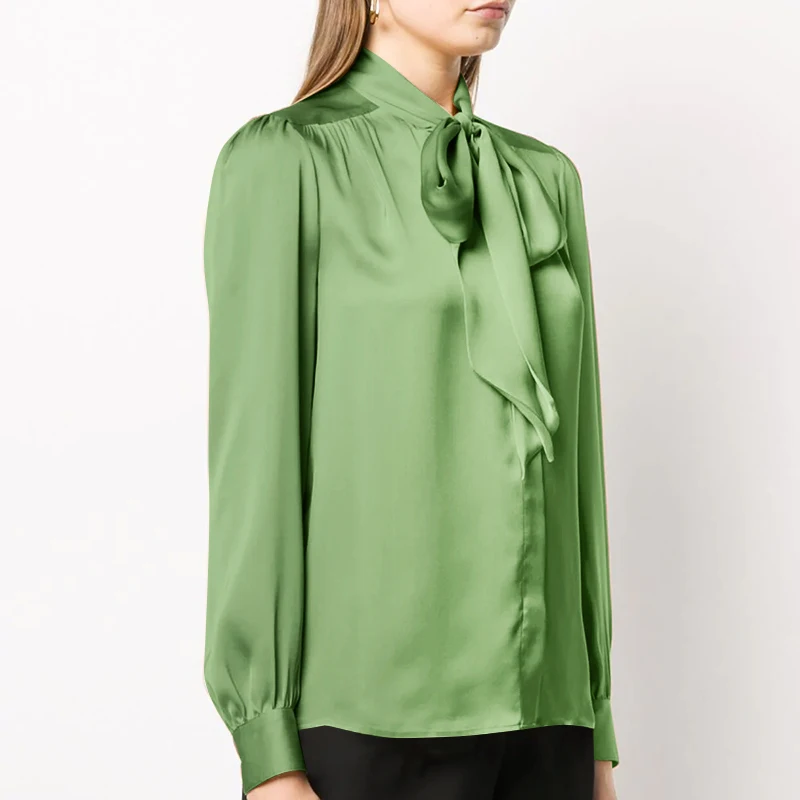 Блузка Женская атласная, с галстуком-бабочкой и длинным рукавом, лето 2021