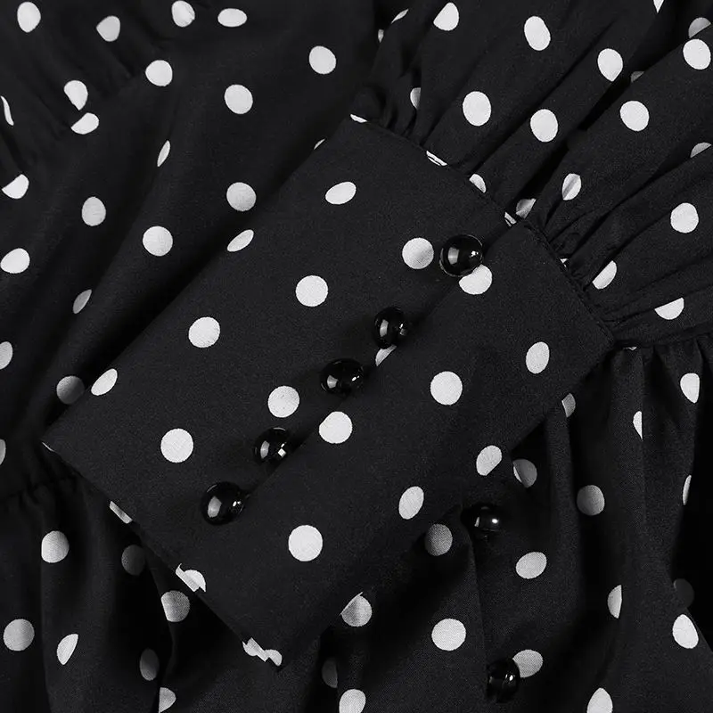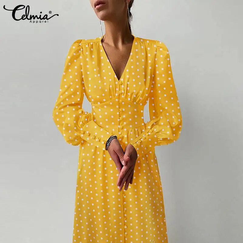 Celmia женское элегантное платье миди с пышными рукавами и V-образным вырезом в горошек однобортное вечернее платье Модные женские повседневные романтические халаты