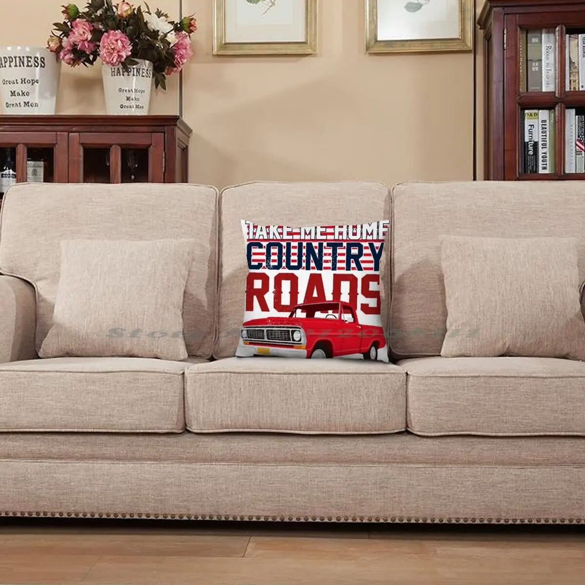 Наволочка для подушки из хлопка и льна, с изображением грузовика