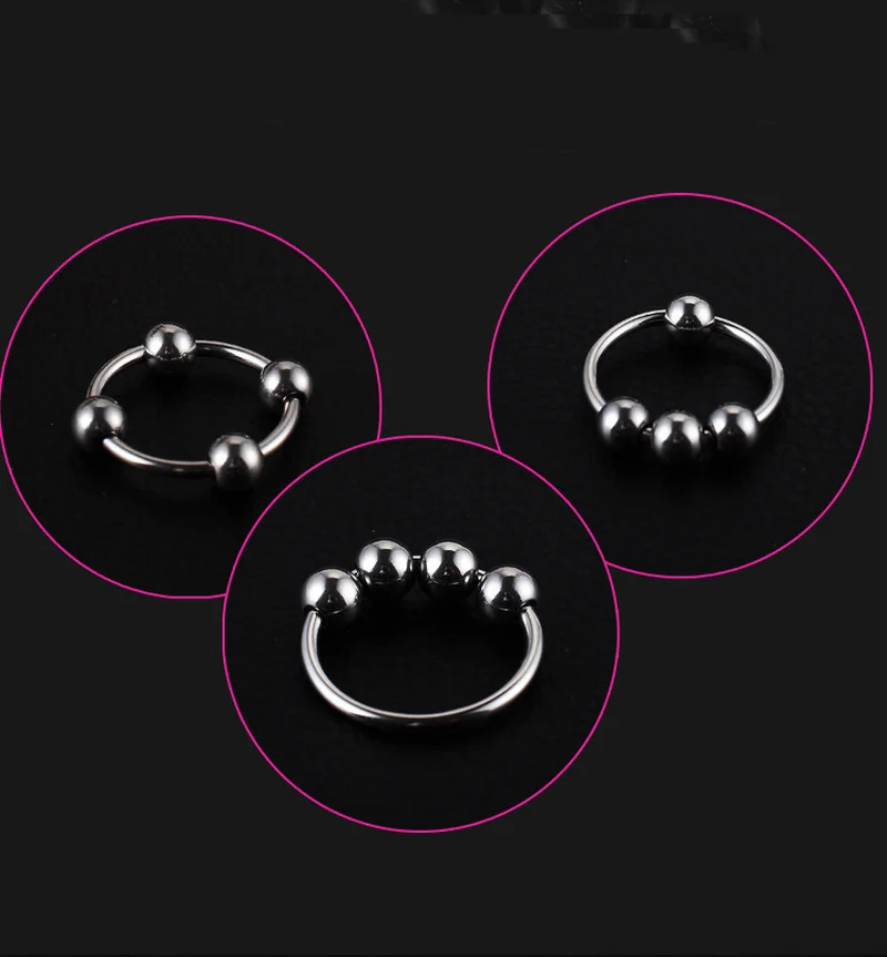 Кольца на пенис из нержавеющей стали с четырьмя подвижными бусинами...