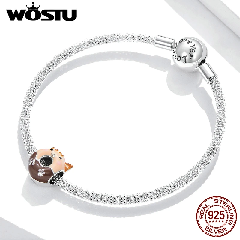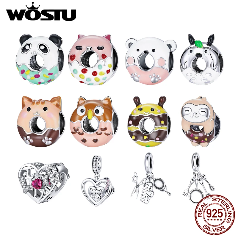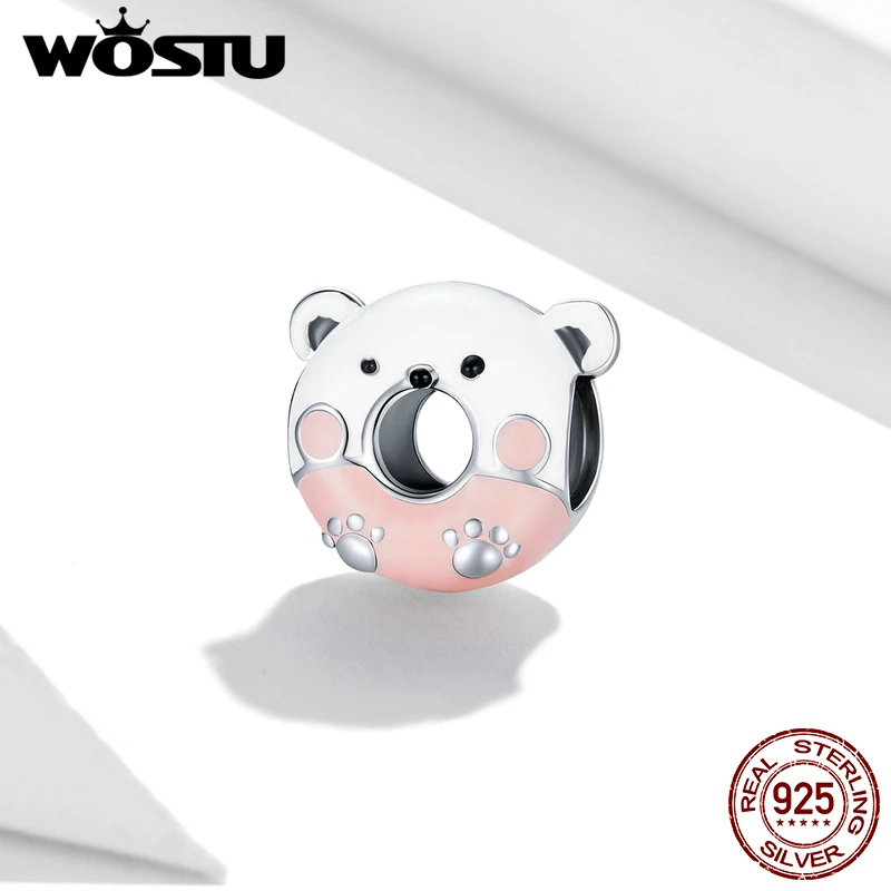 WOSTU 925 пробы Серебряная панда Медведь Китти пчела поросята Пончик подвески