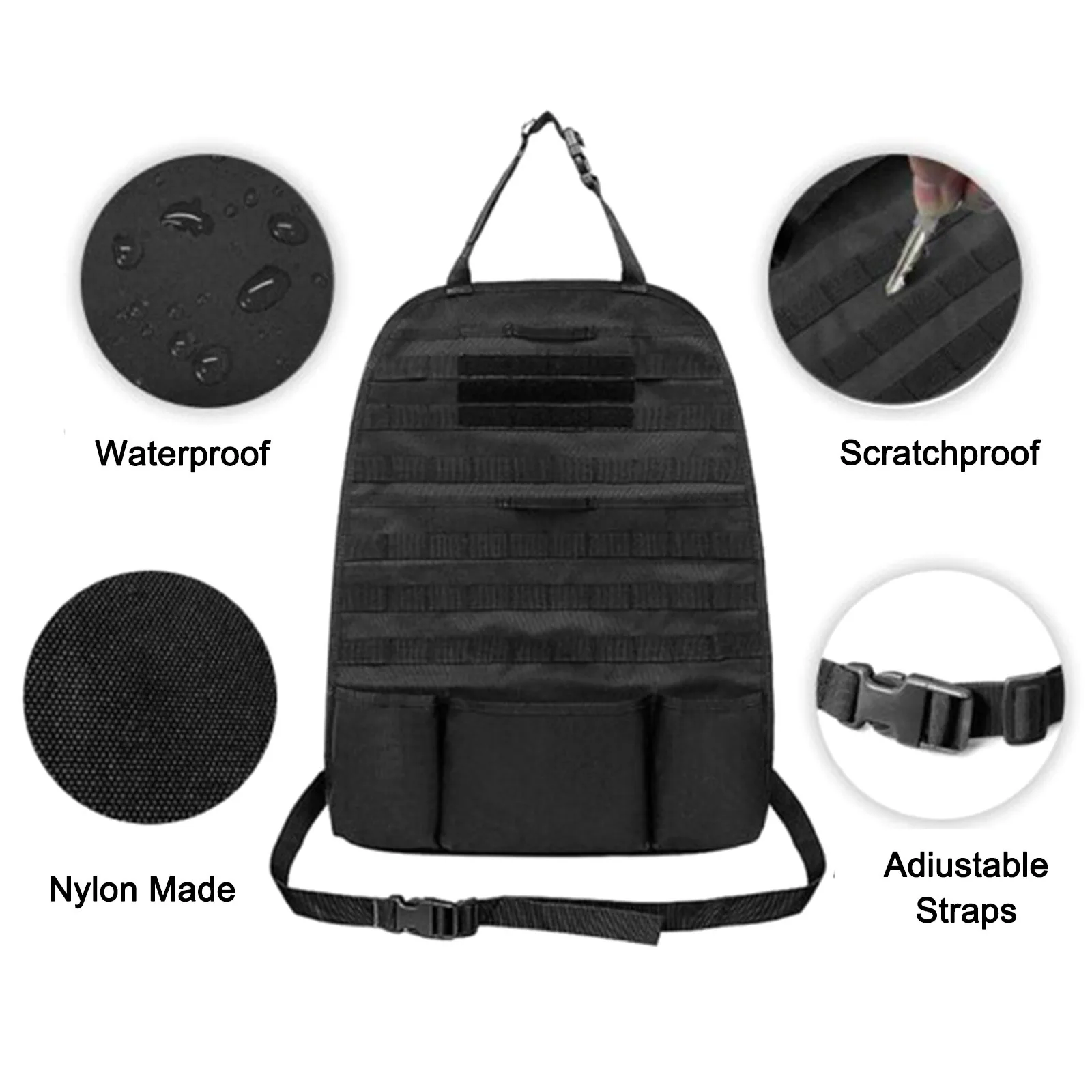 Универсальный Тактический чехол на сиденье, задняя панель-органайзер на сиденье автомобиля, защитный коврик на спинку сиденья с сумкой для хранения и карманом для повседневного использования для автомобиля