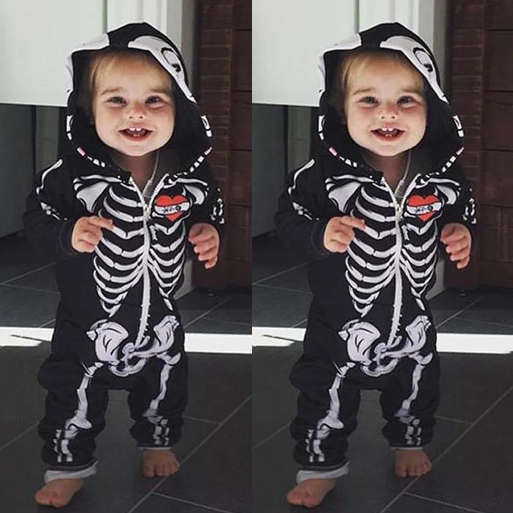 Детский комбинезон на Хэллоуин с принтом черепа, комбинезон с капюш...