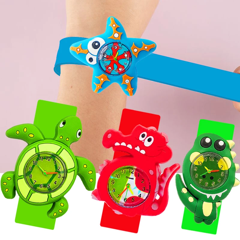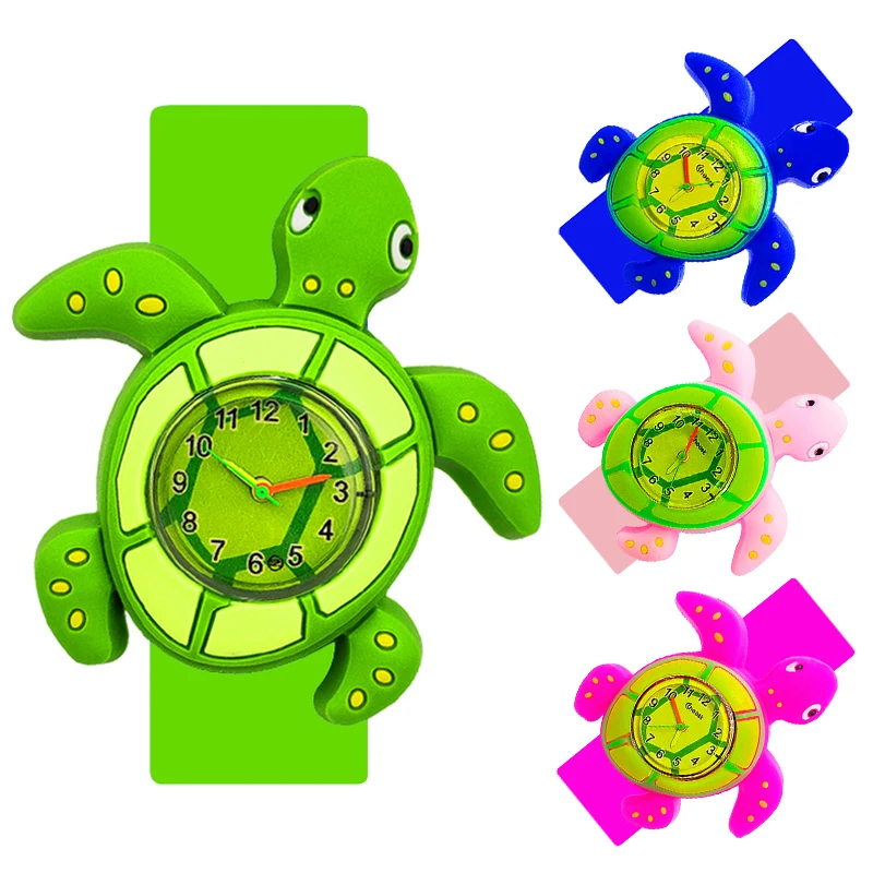Часы для мальчиков и девочек, в форме зеленой черепахикрокодилакраба, От 1 до 12 лет, детская игрушка, детские часы, подарок на день рождения, часы