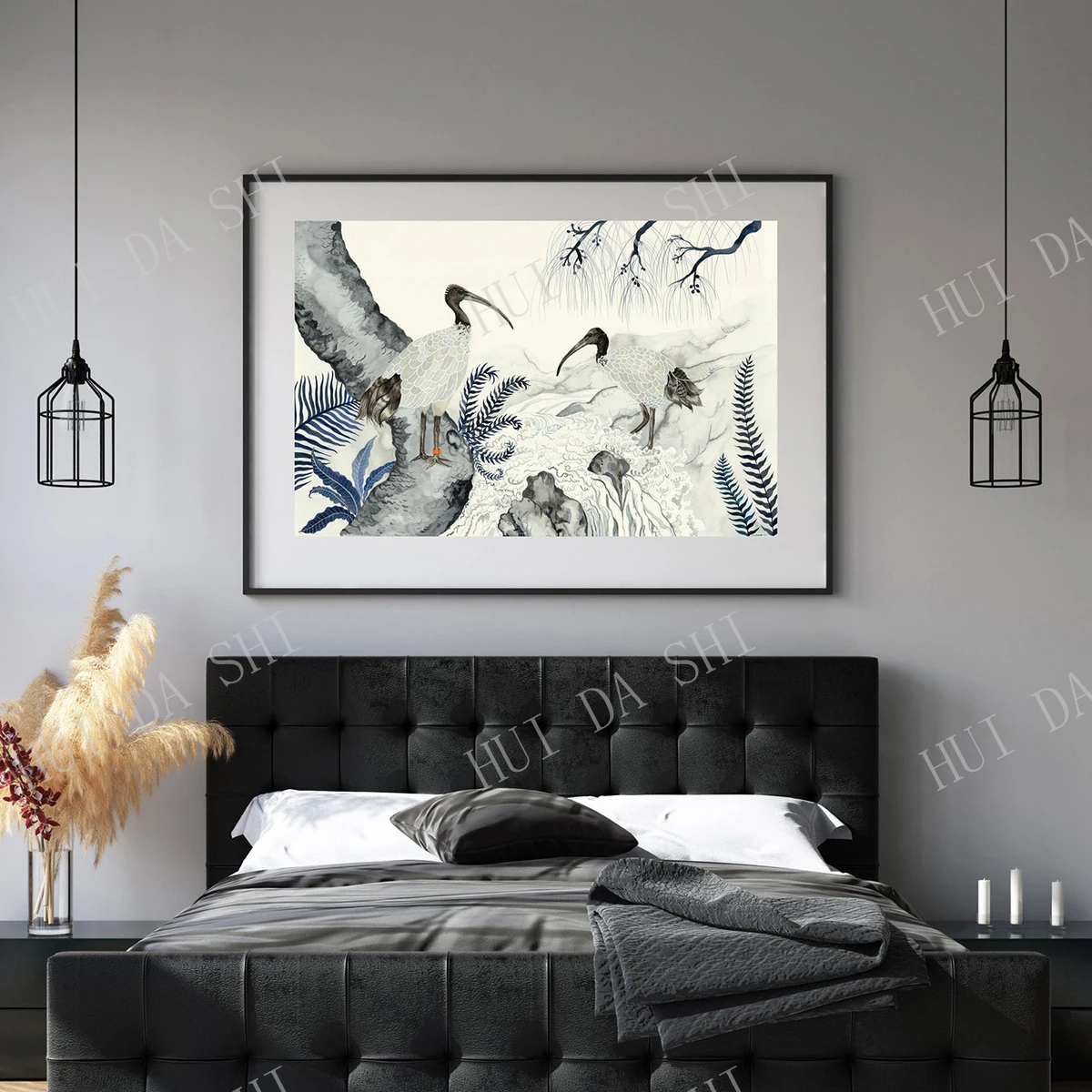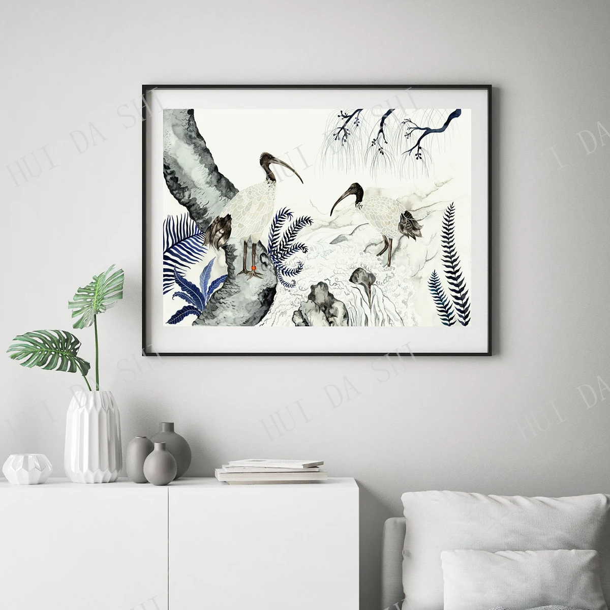 Корн-курица, Ибис, австралийское искусство, австралийское, китайское украшение, японский стиль, орнитология, акварельные птицы, родные птицы