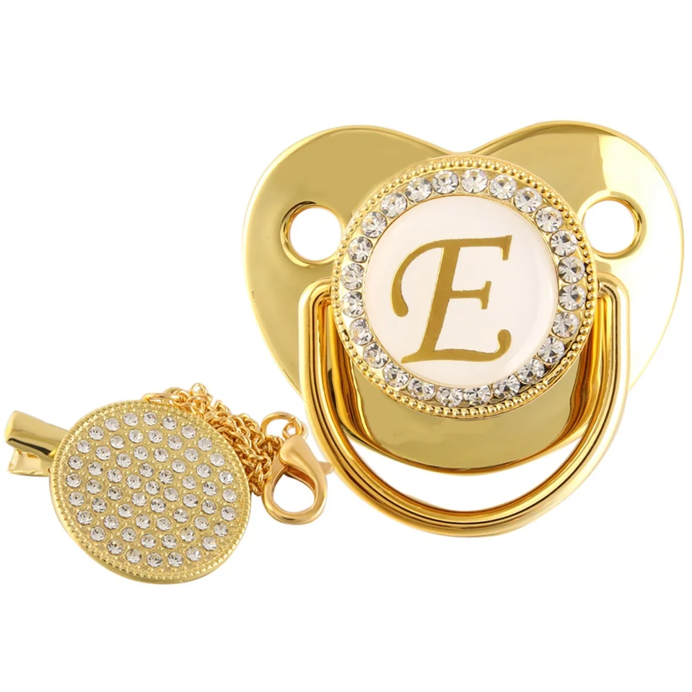 Золотая детская соска и 26 инициальных букв, блестящие соски-клипсы без бисфенола А, силиконовая соска для новорожденных, пустышка-пустышка
