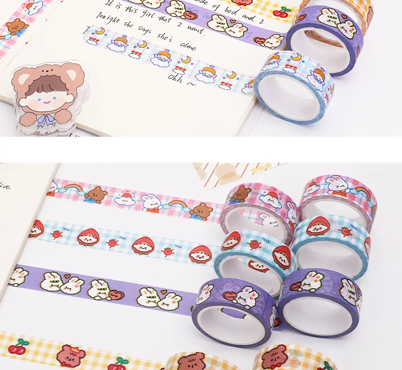 Мультяшный медведь, Васи-лента, милые девушки, сделай сам, ручной счет, материал, украшение, красочные наклейки, 5 метров, корейские канцелярские принадлежности