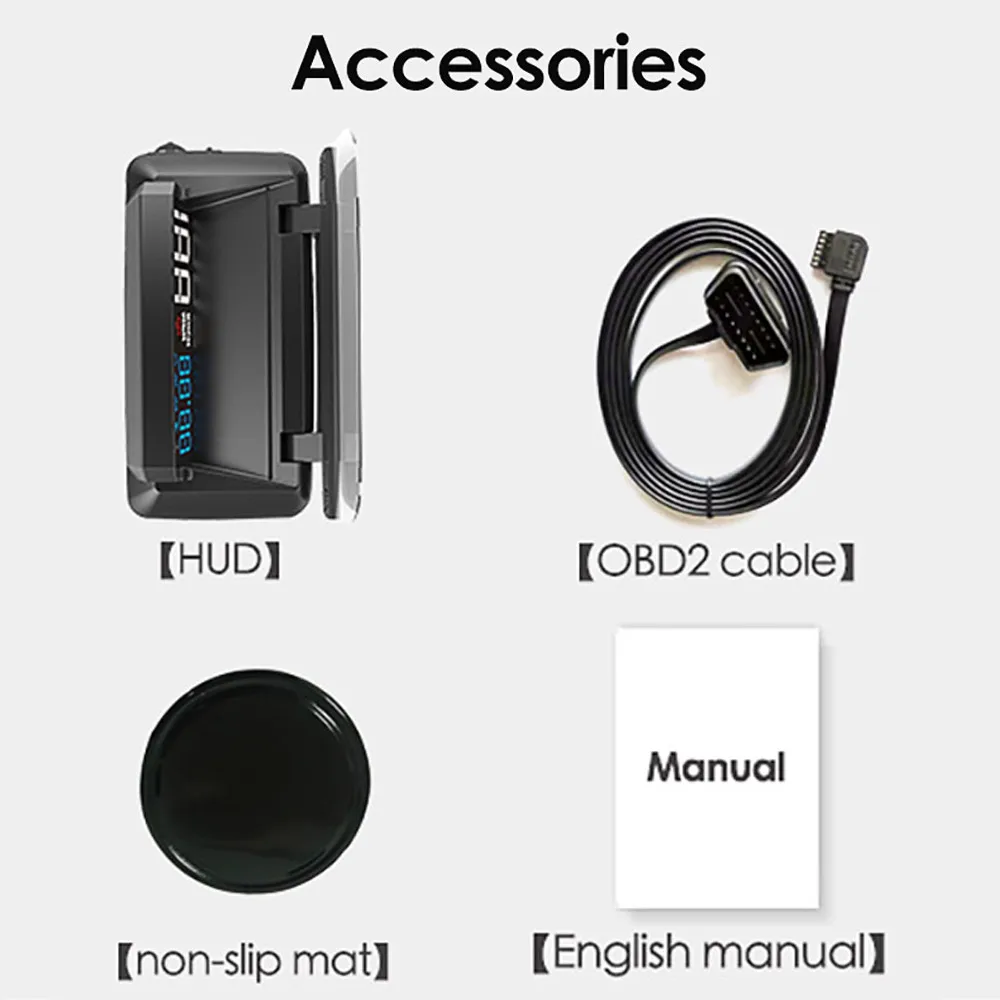 Сигнализация превышения скоростиСигнализация напряжения, км/ч и миль/чПрименяетсяДоступно для новых автомобилей с интерфейсом OBD2УниверсальныйДля всех автомобилей, автобусов, грузовиков..Упаковочный лист1 * Основной блок OBD HUD1 кабель OBD21 * нескользящий коврик1 * Руководство пользователя1 * оригинальная коробка1 * Основной блок HUD1 * USB кабель1 * нескользящий коврик1 * Руководство пользователя1 * оригинальная коробкаИнформация о товаре: