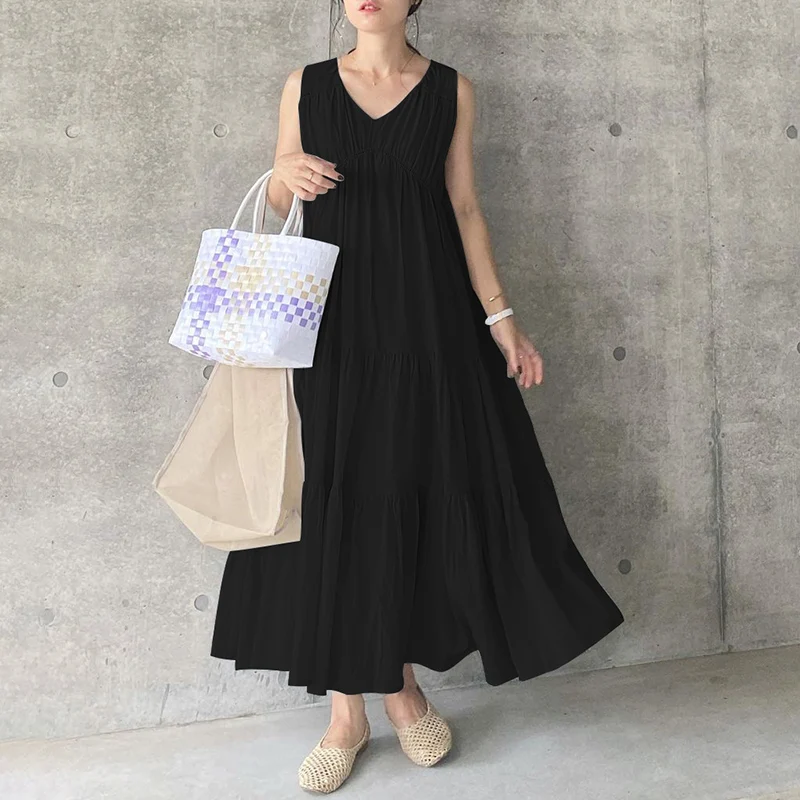 Посылка входит: 1 платьеМатериал: 100% хлопокЦвета: черный, хаки светильник бойДлина рукава: без рукавовВырез: v-образный вырезУзор: однотонныйДлина: длина до середины икрыТолщина: тонкаяОсобенности: оборки по краю, чистый хлопокСтиль: свободное, богемное, ретро, Европа, литература, свободное, многослойное платьеСезон: весна, лето, осеньПовод: семья вечерние, пляж, свадьба, праздник, работа, путешествия, ПовседневнаяВнимание:1. Реальный товар может немного отличаться по цвету по сравнению с изображениями на разных мониторах компьютеров. Будьте осторожны при обращении, спасибо.2. Возможна погрешность в 1-3 см из-за ручного измерения. Приносим извинения за неудобства.3. Пожалуйста, ориентируйтесь на реальный товар, изображения модели только для справки.4. Внимание! Пожалуйста, внимательно проверьте таблицу размеров перед размещением заказа.