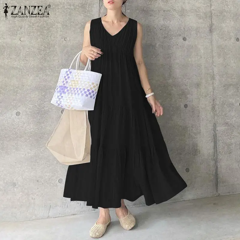 Женское богемное Платье макси с оборками ZANZEA, летний сарафан в с...