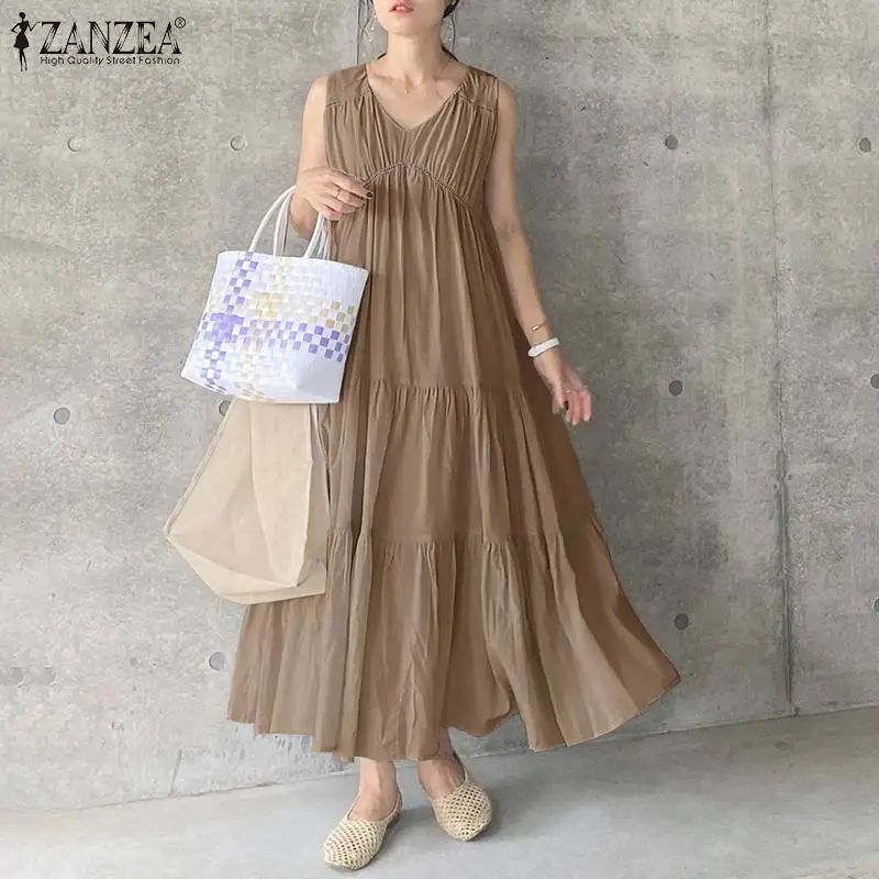Элегантное однотонное платье ZANZEA с оборками, женский летний сара...