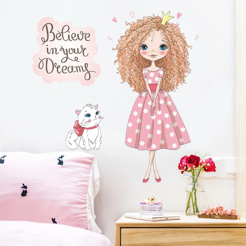 Наклейки «Моя принцесса» для девочек, для детской комнаты, настенные украшения, Мультяшные милые постеры, съемные ПВХ настенные художественные наклейки