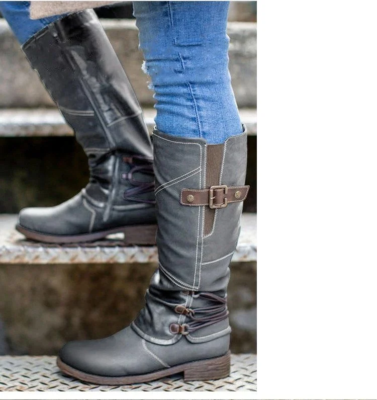 Женские ботинки с пряжкой и ремешком, осенне-зимняя обувь с большим круглым носком