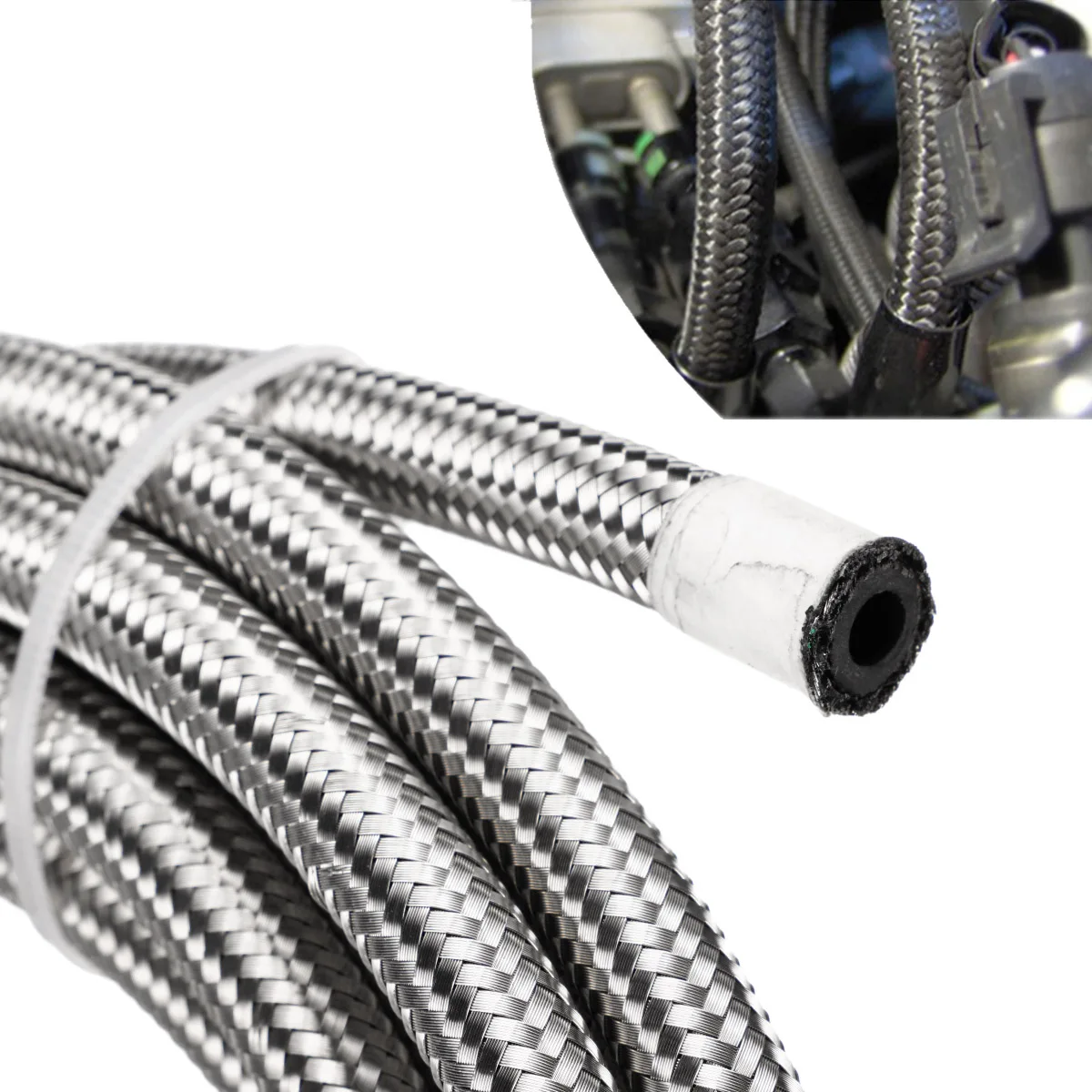 Универсальный Топливный шланг 16FT AN4 AN6 AN8 AN10 Racing, шланг для охлаждения масла и газа, трубка из нержавеющей стали с оплеткой внутри из резины CPE