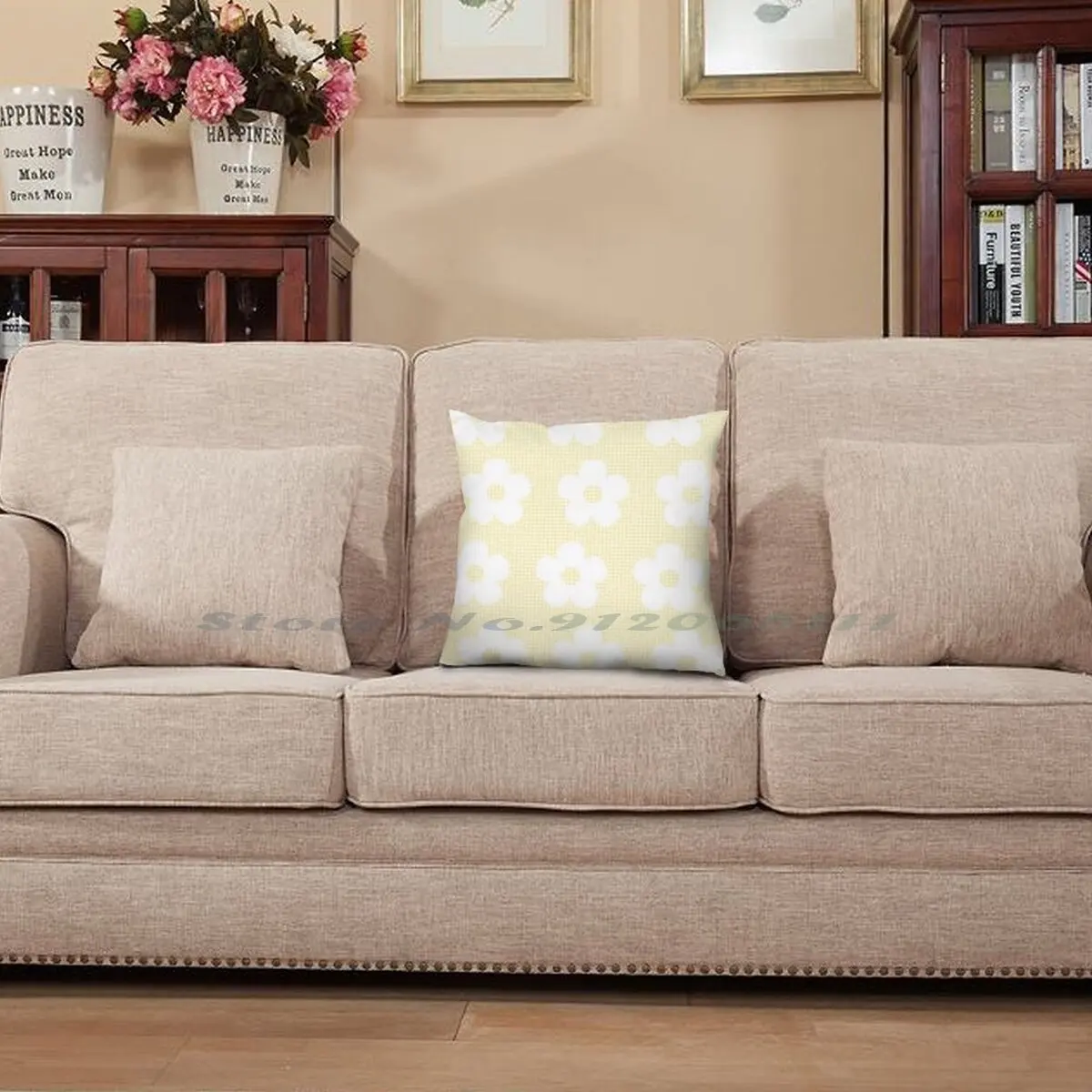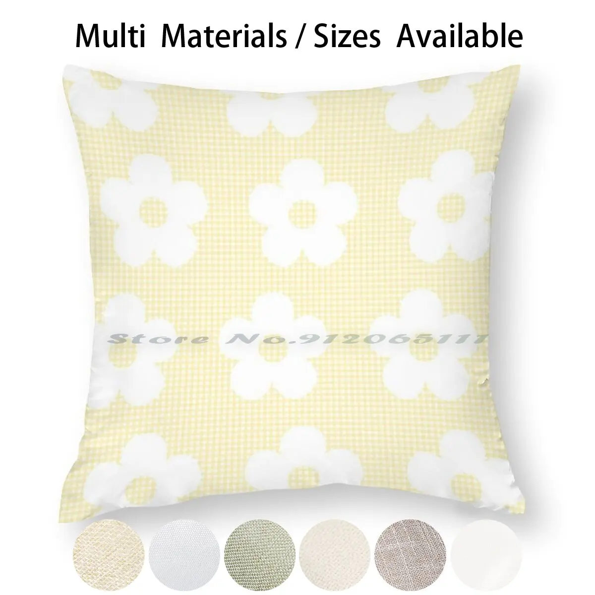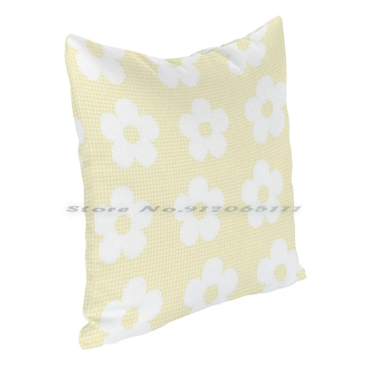 Пастельная желтая клетчатая белая Цветочная кавайная симпатичная хлопчатобумажная подушка в эстетике Чехол наволочка из хлопка льняной Пастельной ткани