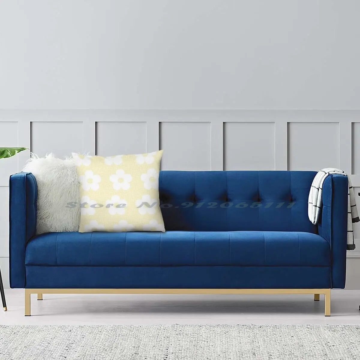 Скандинавская Милая синяя искусственная Подушка, наволочка для дома...