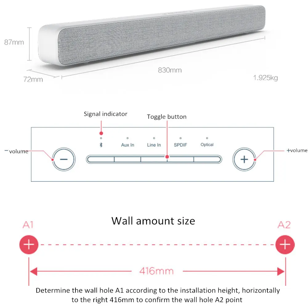 Беспроводной динамик Xiaomi Mi TV, домашний кинотеатр, оригинальная звуковая панель SPDIF, оптическая звуковая панель Aux, поддержка Xiaomi, Samsung, LG TV
