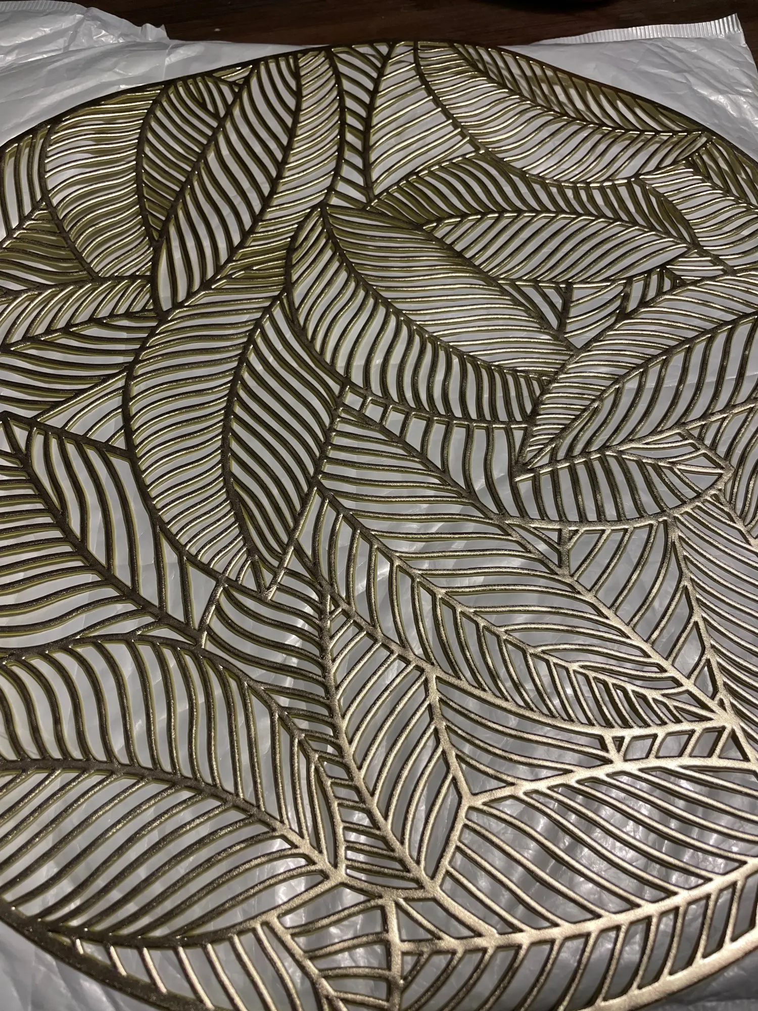 Подставки под тарелки просто потрясающие! Красивые и хорошего качества, не помяты. Товар пришёл очень быстро, упакован в пакет с пузырьками. Доставка тоже порадовала - супер быстрая. Размер подставки очень большой. Мне очень нравится. Рекомендую 109%.