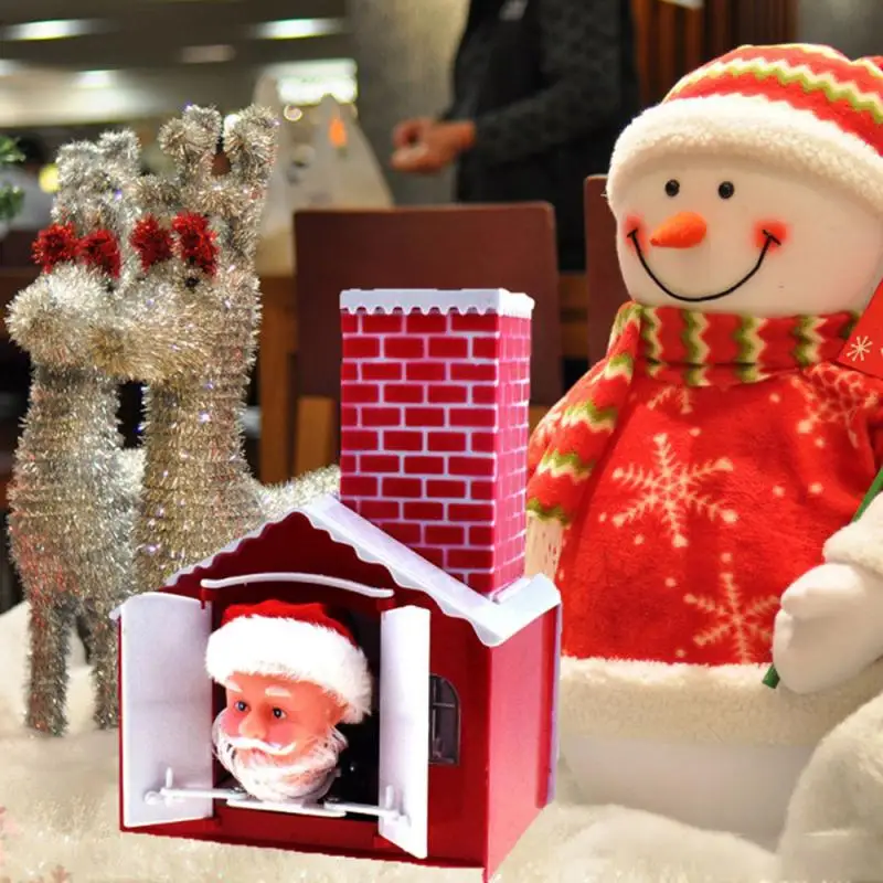Электрическая подъемная лестница с Санта Клаусом, буровой дымоход и дом, плюшевые куклы с музыкой, креативный Рождественский подарок