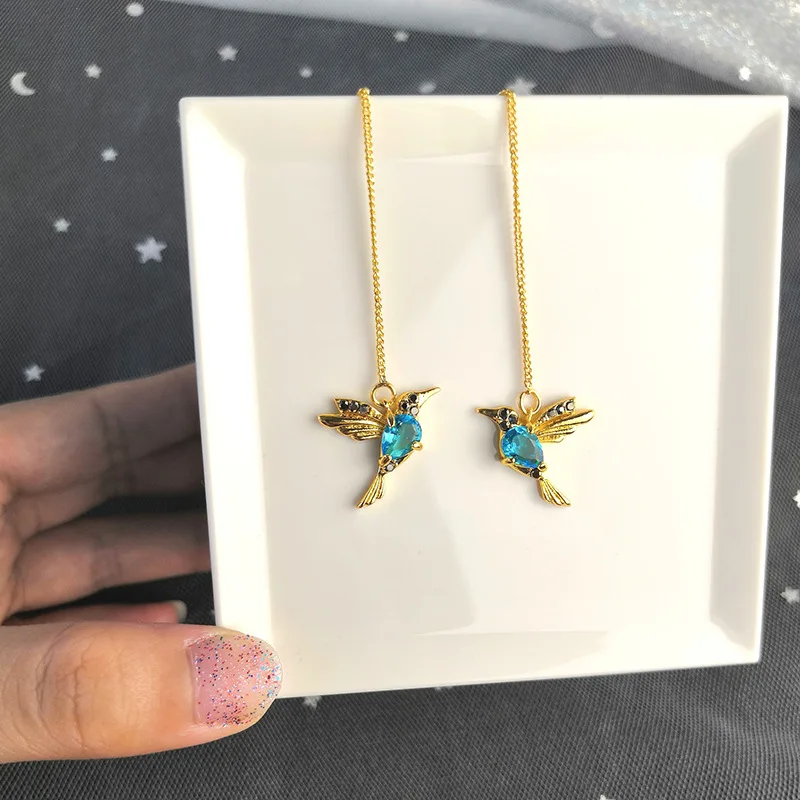 Длинные висячие серьги-цепочки с кристаллами в виде маленькой птицы для женщин, элегантные серьги с кисточками и линией Колибри, бриллиантовые серьги серьги длинные серьги подвески серьги цепи серьги кисточки