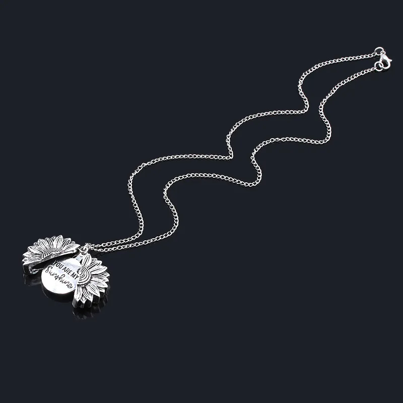 Женское золотое ожерелье, открывающийся медальон с надписью You are my sunshine, подсолнечник, подвеска, ожерелье