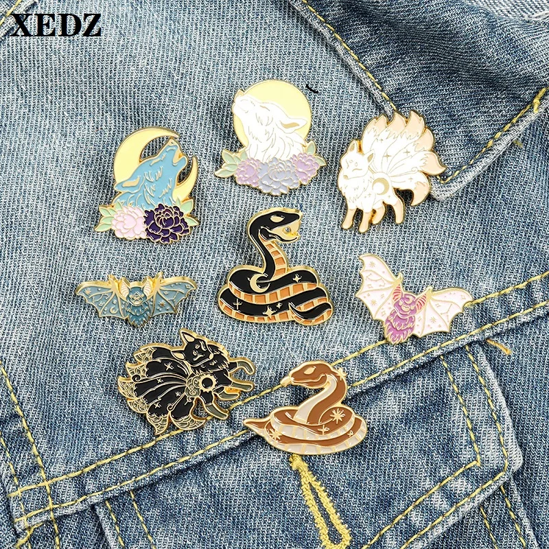 Модная брошь-животное, звездная луна, цветы, волк, лиса, летучая мышь, мутант, змея, для влюбленных, на заказ, одежда, ювелирные изделия, панк, отворот, булавки, подарки друзьям