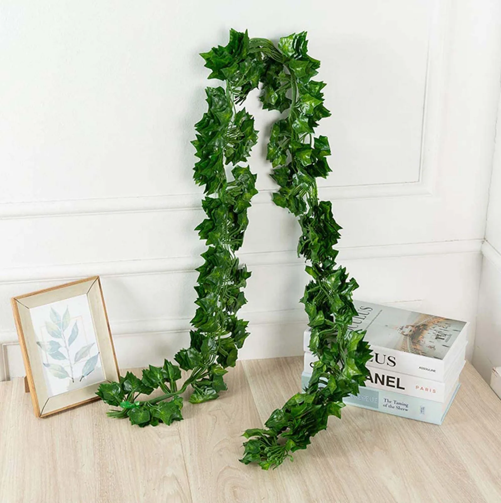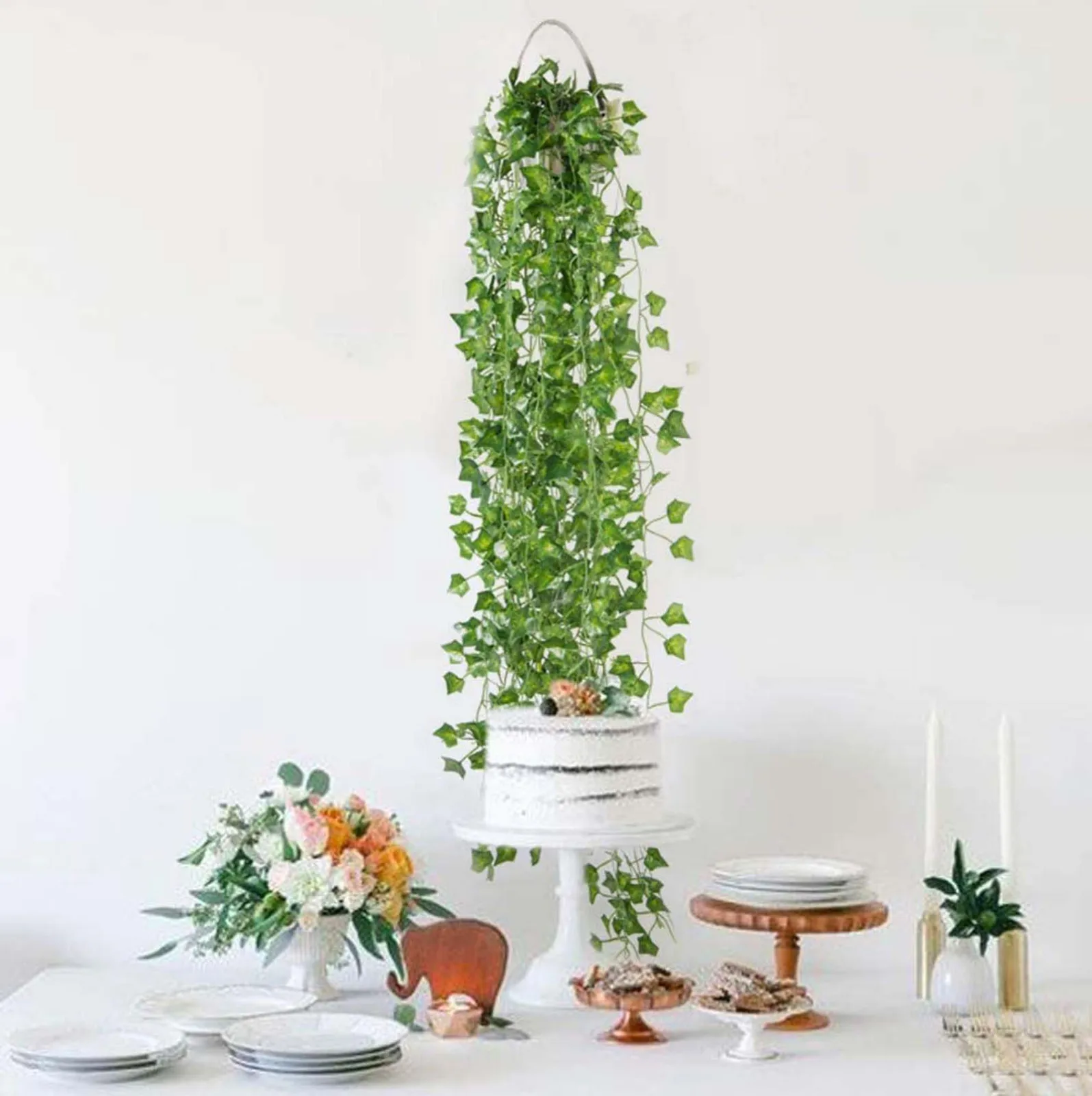 Искусственные листья плюща, зеленые искусственные листья, гирлянда, растения, листва винограда, домашний декор, подвесные пластиковые искусственные растения для украшения стен, 12 шт., 2 м
