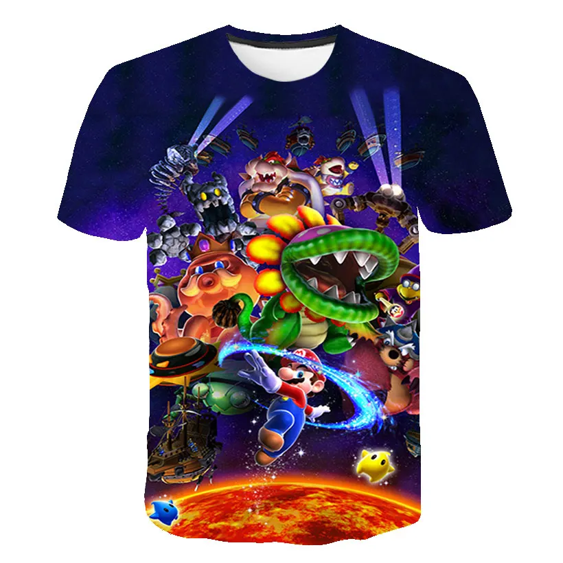 Летняя воздухопроницаемая Футболка с принтом "Супер Марио", детская одежда, крутая детская одежда для мальчиков и девочек, модная мультяшная футболка с коротким рукавом, 2021