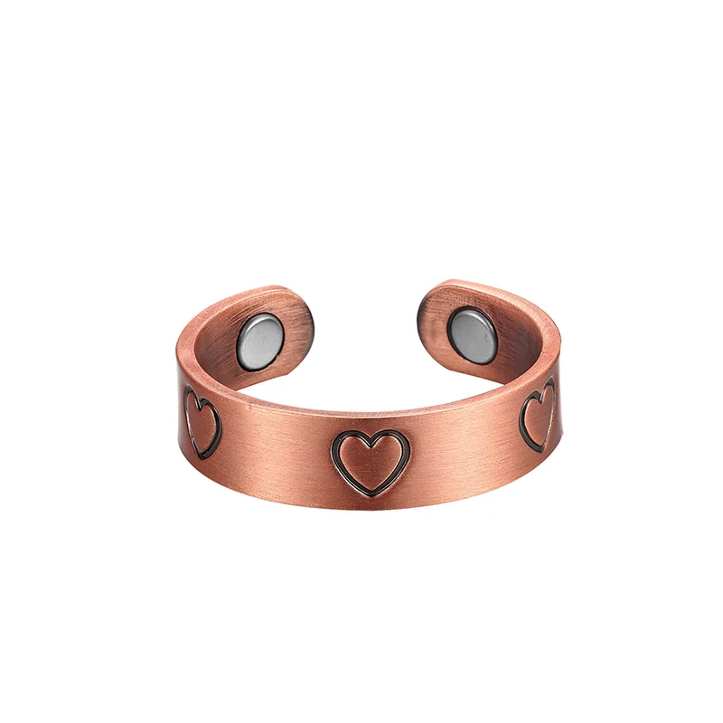 Oktrendy кольца из чистой меди для женщин и мужчин магнитное 6 мм винтажное регулируемое кольцо в форме сердца энергетическое кольцо на палец для женщин и мужчин