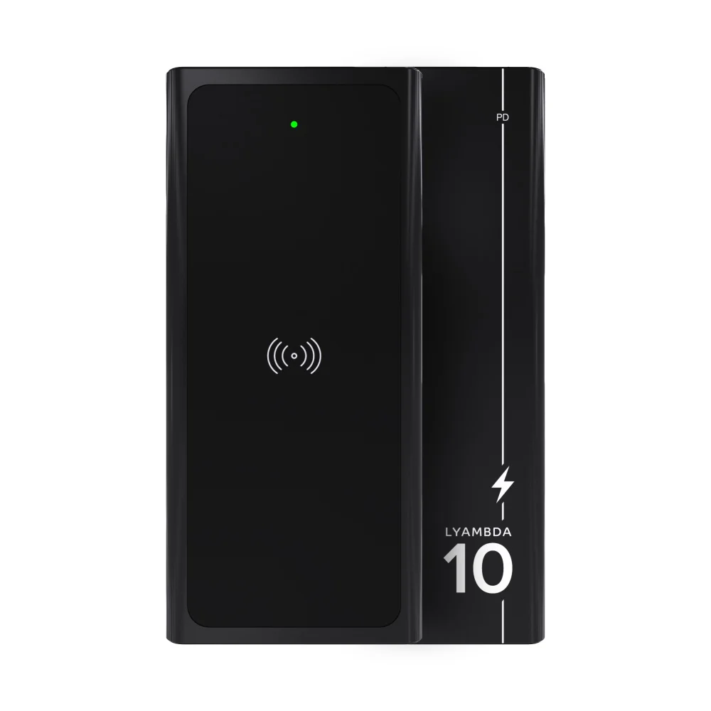 Внешний аккумулятор 10000 мАч с беспроводной быстрой зарядкой 10W Lyambda Power Delivery + QC3.0 Aluminum LP101 Black