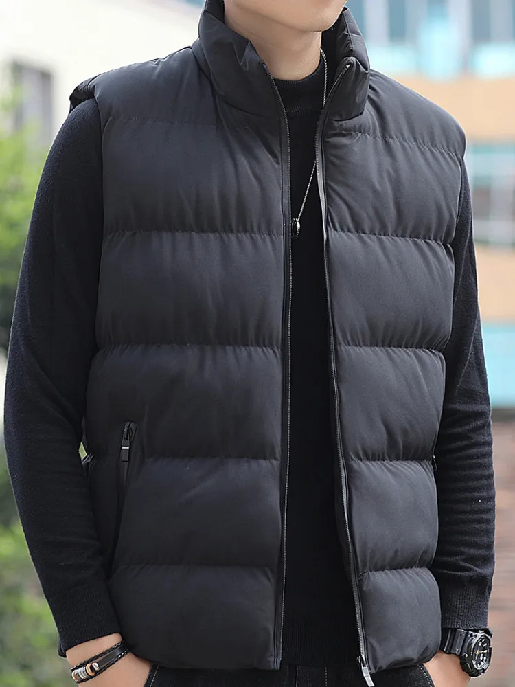 Мужской осенне-зимний жилет 2021, однотонный жилет с воротником-сто...