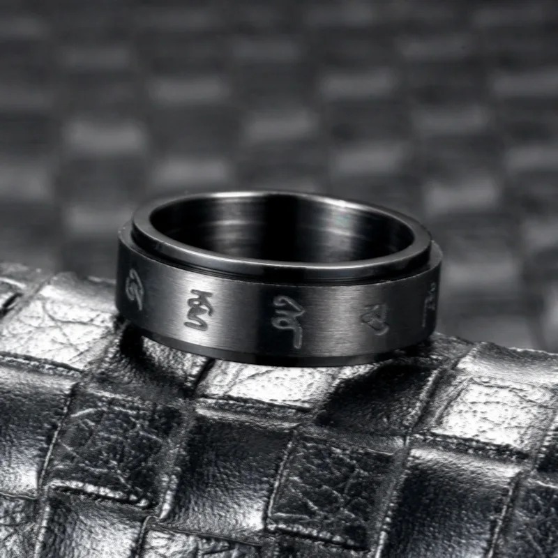 кольцо мужское кольца 2021 тренд кольца Черные титановые стальные кольца бога богатства для мужчин, тибетская буддийская мантра, вертушка на удачу, 8 мм, религиозное вращающееся кольцо