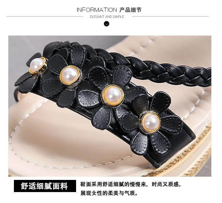 Сандалии для девочек; Новинка 2021 года; Сезон лето; Универсальная обувь на плоской подошве с цветочным узором; Феи; Сандалии на танкетке с двумя ремешками; Маленькие размеры