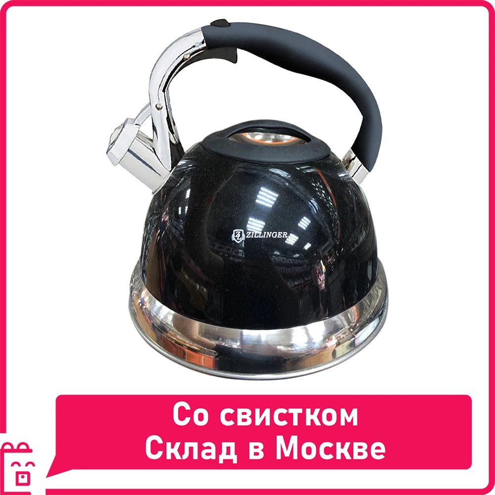 Металлический чайник со свистком Zillinger 2,7 л, черный