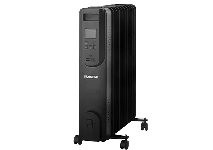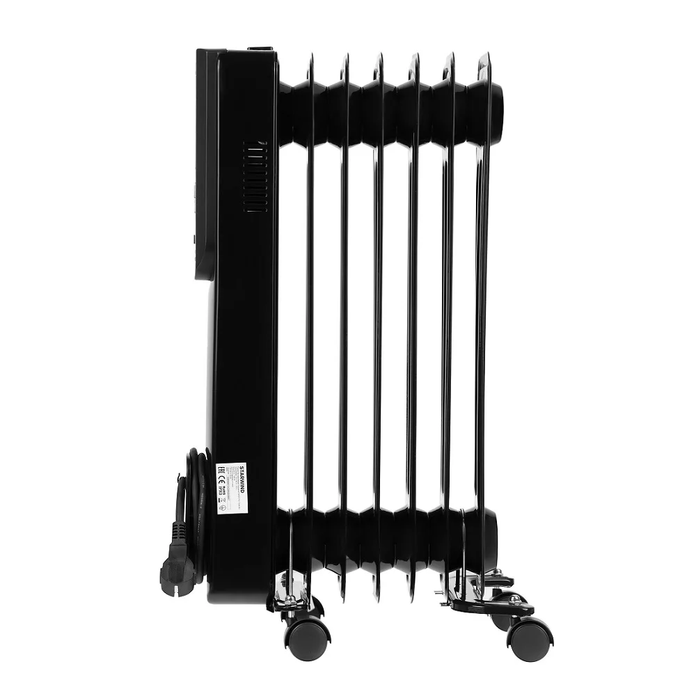 Масляный радиатор shv5710 обеспечивает 7 нагревательных секций. Рекомендуемая Площадь помещения для данной модели составляет до 15 м2. Масляный радиатор StarWind shv5710 выполнен в оригинальной черной версии-органично смотрится как в интерьере гостиной, так и в офисном помещении.
